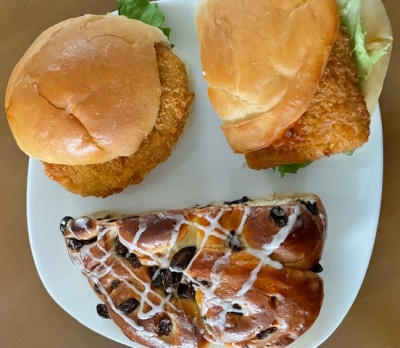 メロンパン、どらやき、アジのたたき、アイス豆乳ラテ