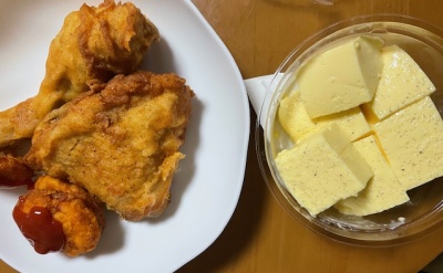 ケンタッキー・フライド・チキン4個、ナゲット3個、プリン、ホットカフェラテL