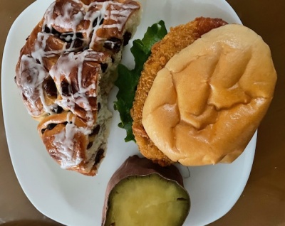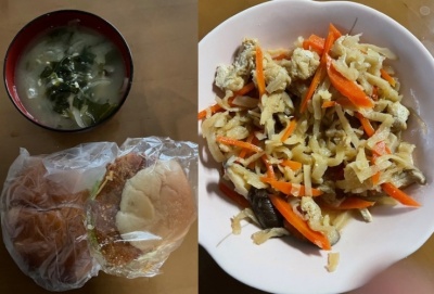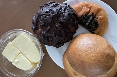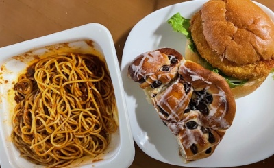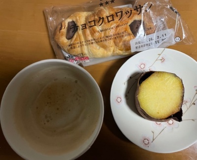 ぶどうシナモンパン、コロッケパン、焼き芋、酵素ドリンク