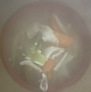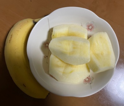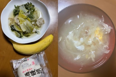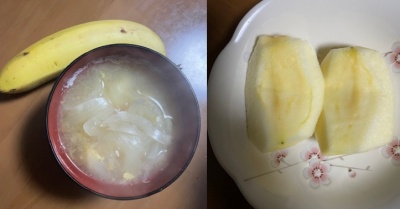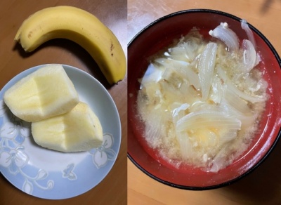 バナナ、りんご、味噌汁(玉ねぎ、卵)