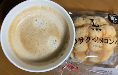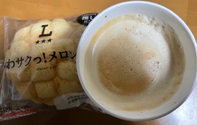 コロッケパン、クリームパン、あんぱん、シナモンぶどうパン、鶏ささみカツぱん、ローソンのホットカフェラテL