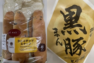 ホットカフェラテL、バナナ、チョコチップスナック、黒豚まん