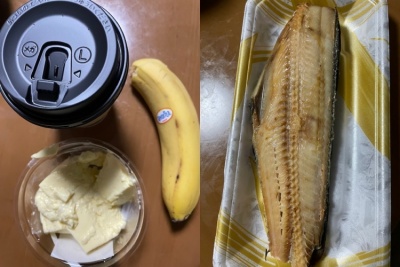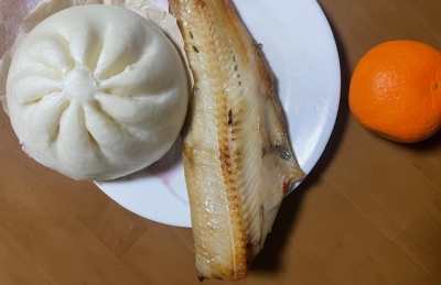 肉まん、ほっけ、みかん、アイス豆乳ラテ