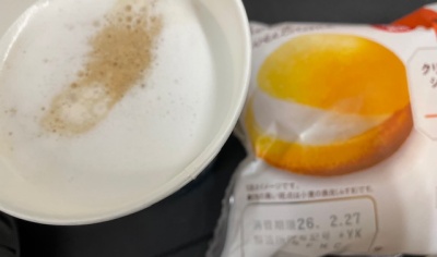 ホットカフェラテL、ダブルクリームサンド、バナナ、ミルク飴
