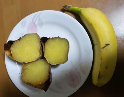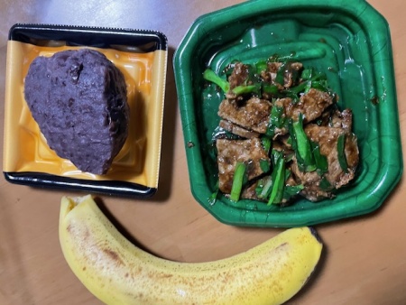 バナナ、あんぱん、鶏ササミかつパン、酵素ドリンク