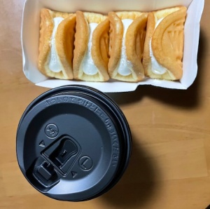 ホットカフェラテM、シュークリーム、バナナ、ミルク飴