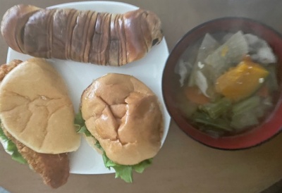 バナナ、みかん、味噌汁(なめこ)、カレー、あんぱん、コロッケパン、クリームパン
