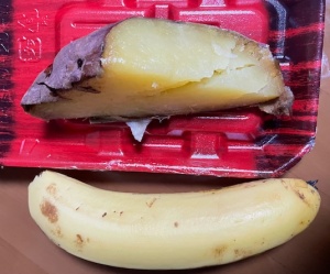 ホットカフェラテL、バナナ、焼き芋、みかん