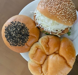 クリームパン、粒マスタードポテトパン、コロッケパン、ホットカフェラテL