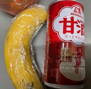 ホットコーヒーL、甘酒、バナナ、ミルク飴