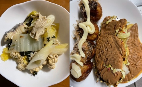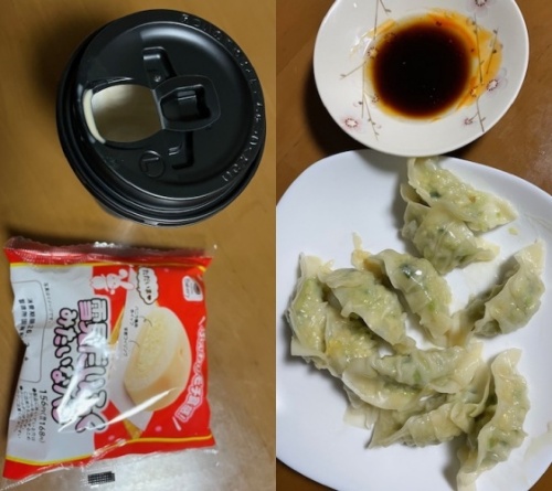 おでん、キムチ、バナナ、みかん、干し芋、アイス豆乳ラテ