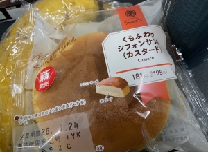 ホットカフェラテL、バナナ、くもふわぁシフォンサンド、ミルク飴