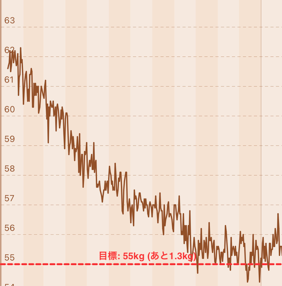 16時時間ダイエット13ヶ月目(361日~390日目)の体重の変化は、55.1㎏→55.6㎏でプラス0.5キロでした。